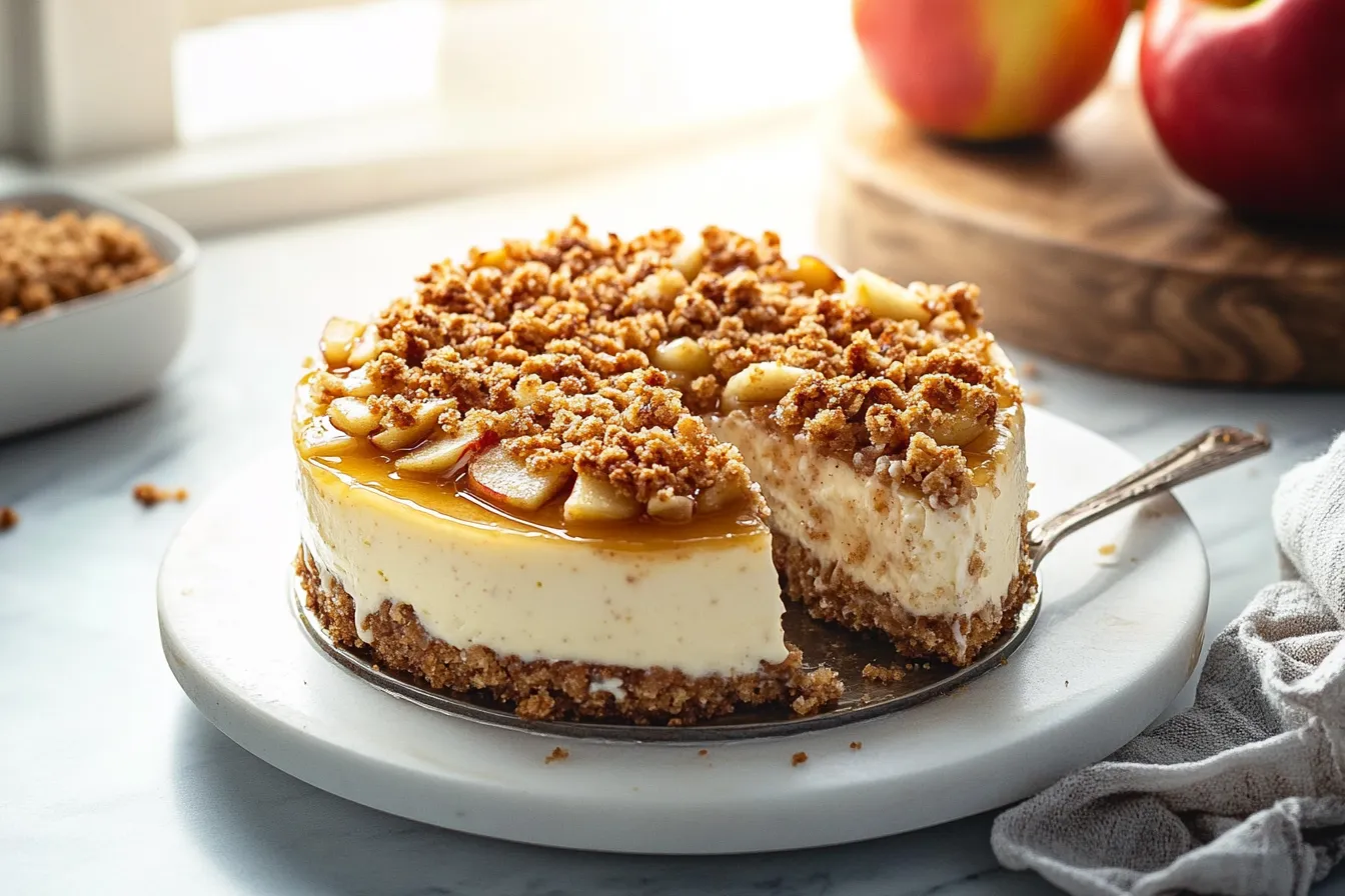 Indulge in this irresistible Apple Crisp Cheesecake recipe A perfect blend of flavors for divine dessert delights Treat yourself today
