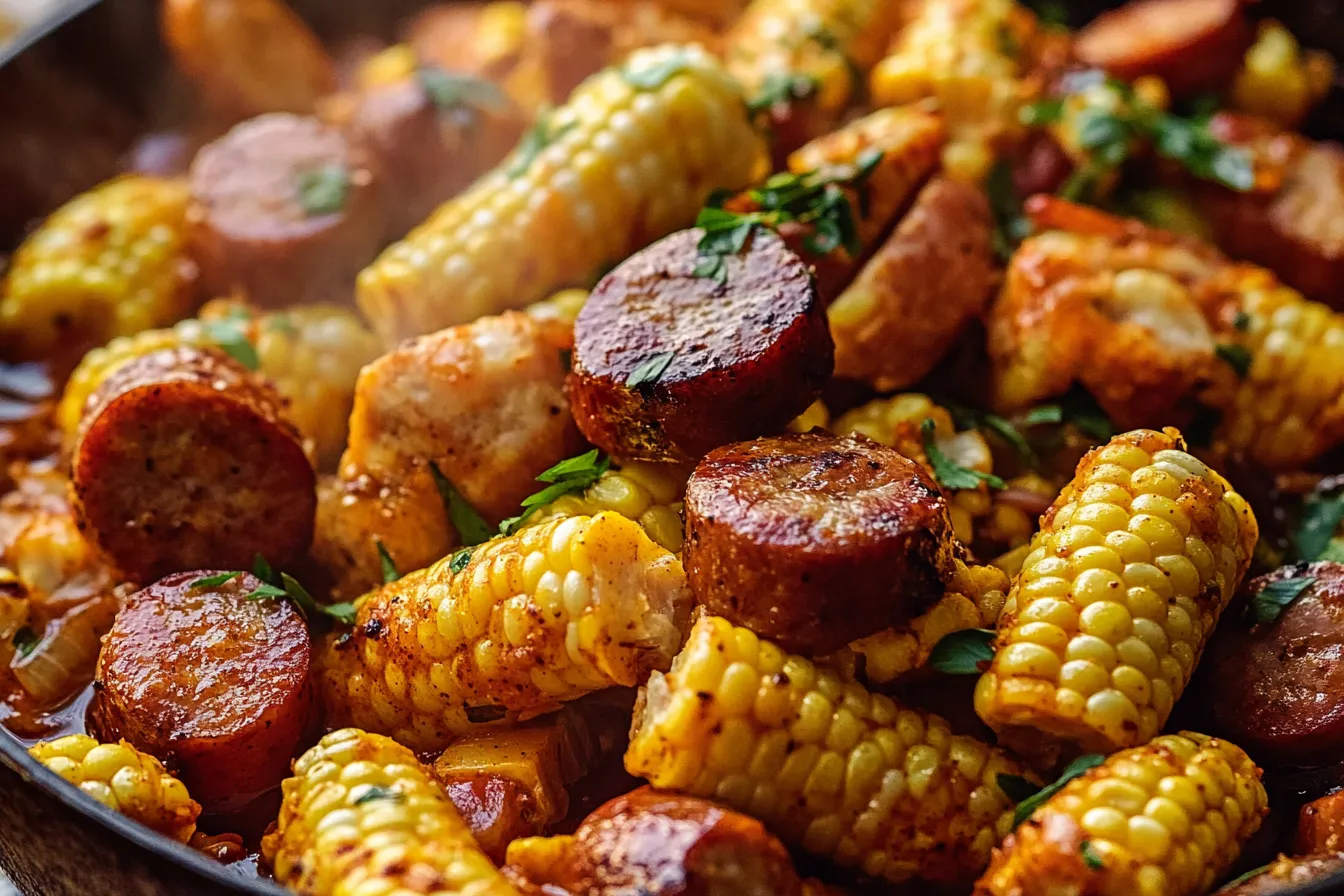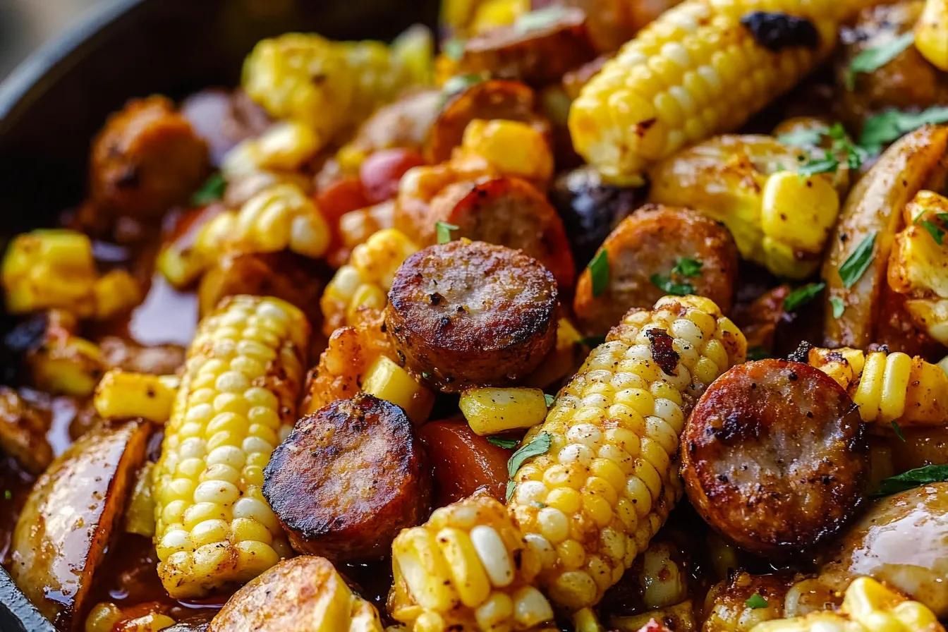 Savor the bold flavors of our Cajun Corn Sausage Boil A delightful dish packed with spice and southern charm for a perfect meal Enjoy today