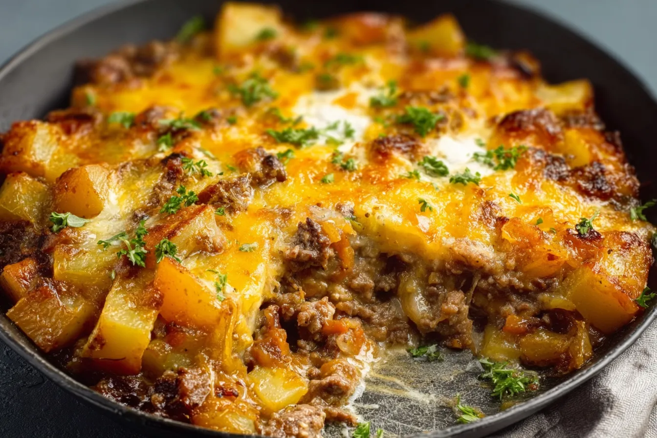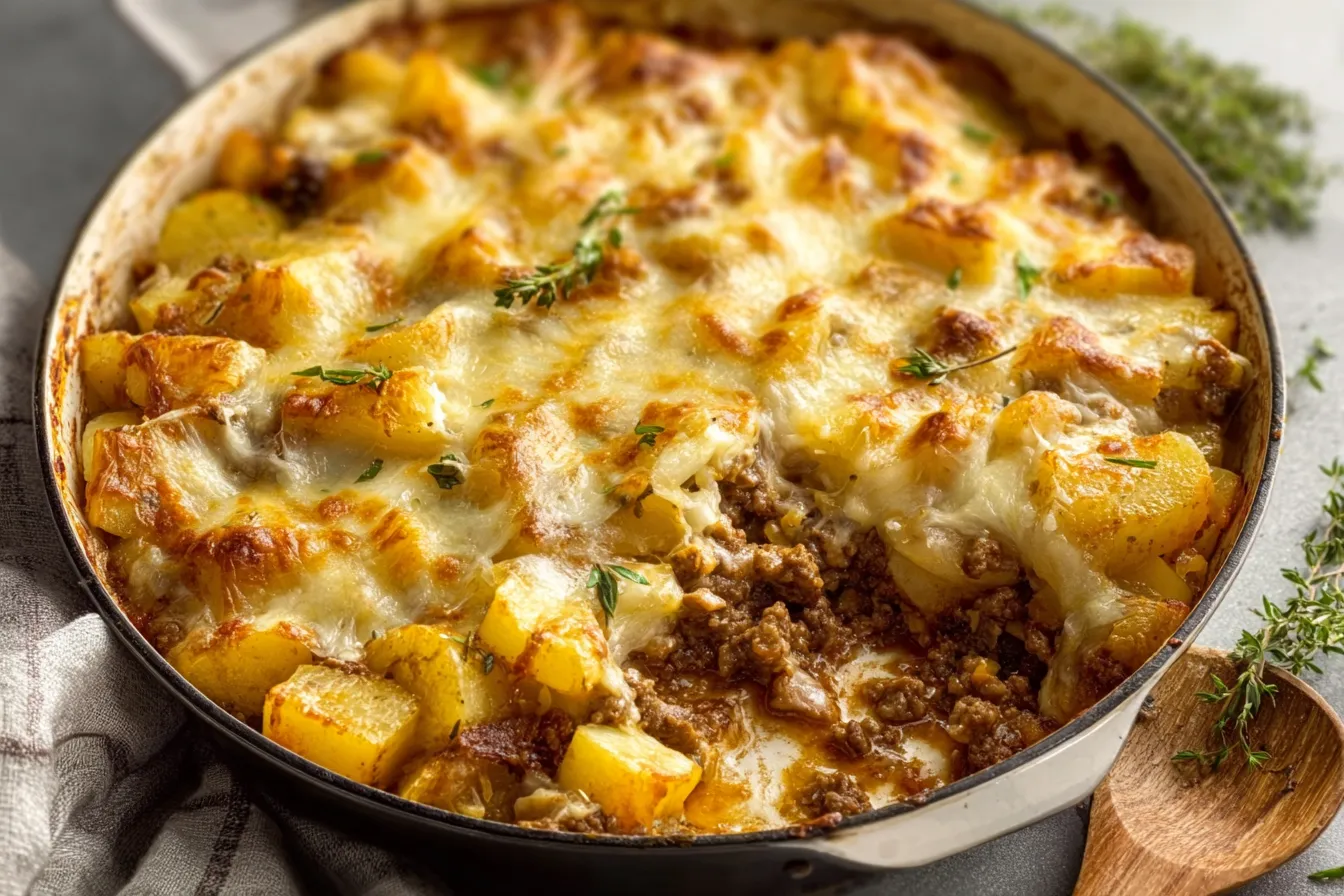 Savor Cheesy Beef & Potato Bake: Irresistible Comfort Dish
