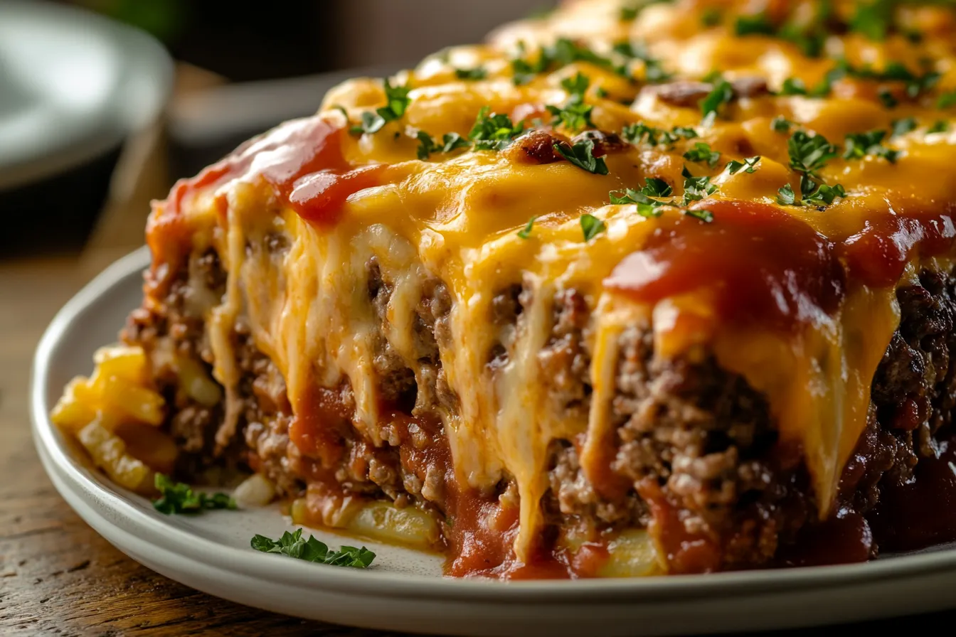 Indulge in this Irresistible Cheesy Loaded Meatloaf Casserole Recipe a delightful twist on comfort food easy for weeknight dinners