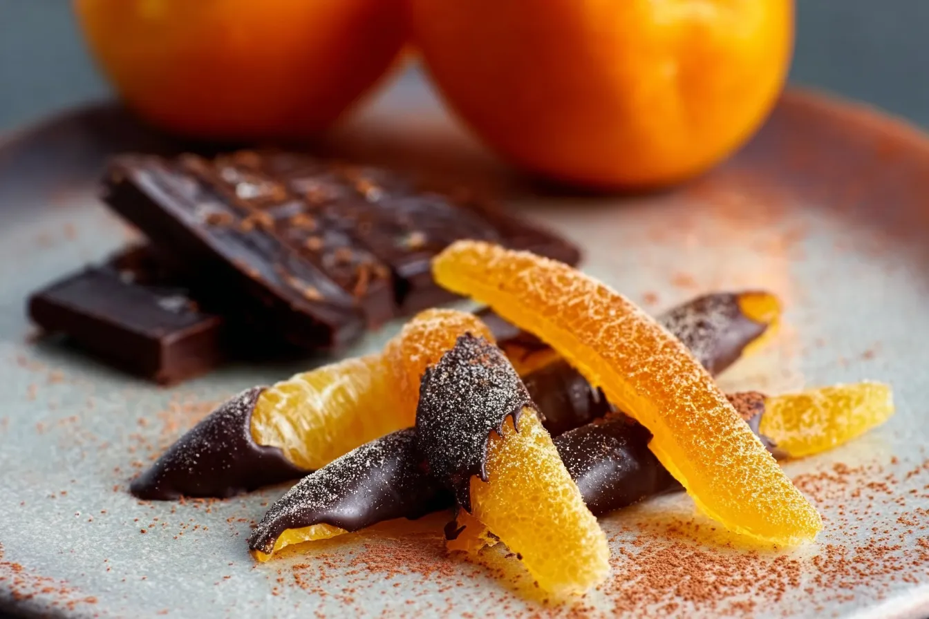 Indulge in the luxurious taste of chocolate-dipped candied orange peels that offer a delightful blend of citrus zest and rich chocolate, perfect for snacking or gifting.