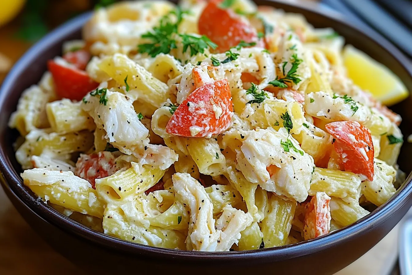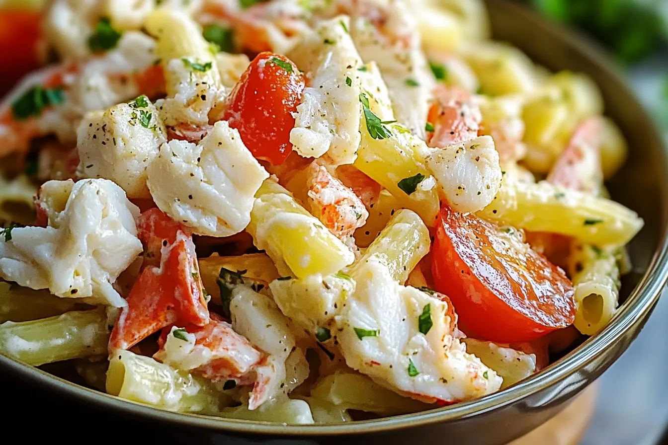 Easy refreshing Crab Pasta Salad recipetasty and perfect for summer gatherings Enjoy the vibrant flavors and effortless prep