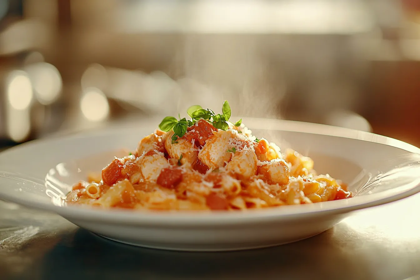 Indulge in creamy penne alla vodka with tender chicken—an easy and delicious pasta dish perfect for any occasion. Satisfy your cravings tonight!