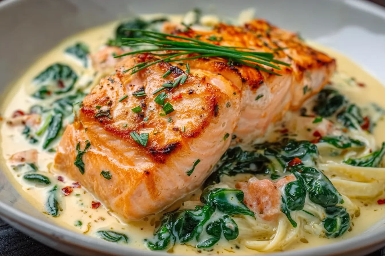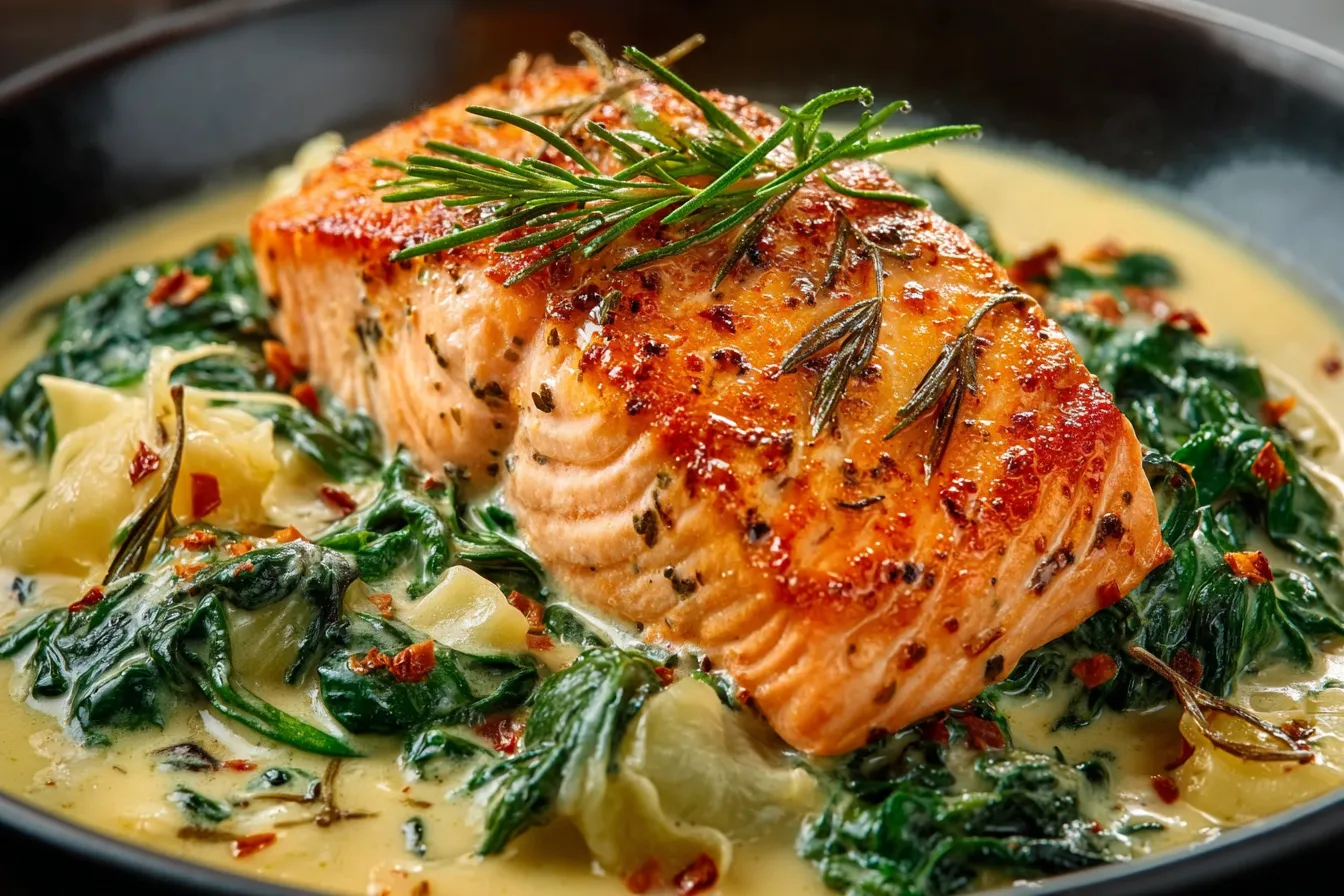 Indulge in a gourmet experience with Creamy Salmon Florentine Discover rich flavors and a luscious texture in this exquisite dish 154 chars