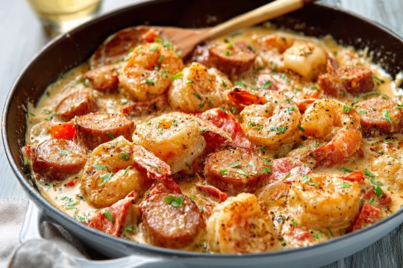 Savor a creamy shrimp & sausage skillet that’s easy to make and packed with flavor. Perfect for a quick, tasty weeknight dinner. Enjoy today!