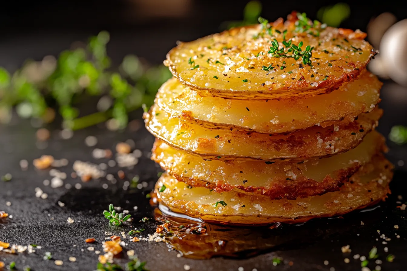 Discover irresistible crispy potato stacks layered with savory parmesan A crunchy delight for your taste budsperfect for any occasion