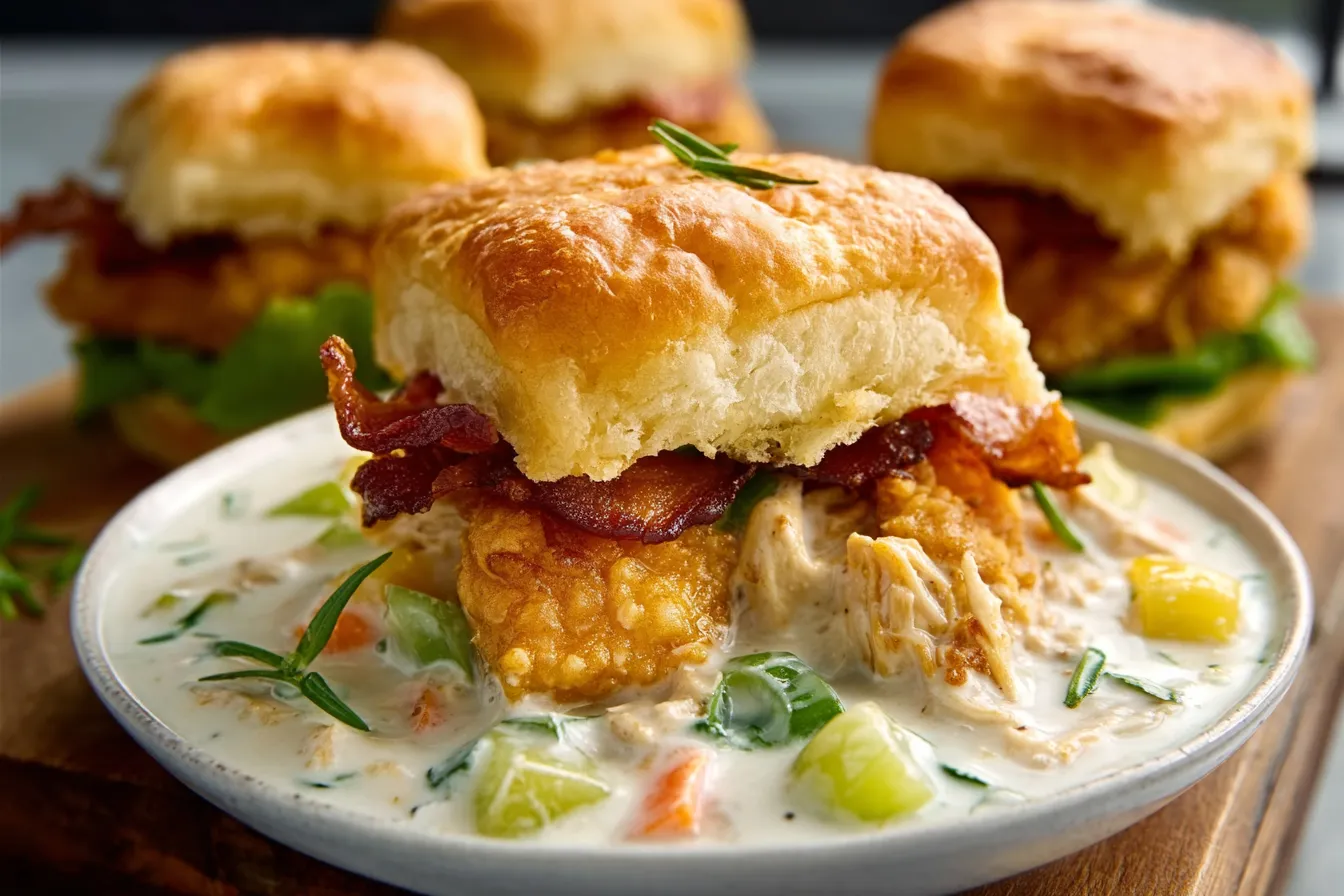 Transform your meals with Crispy Ranch Chicken Bacon Sliders that combine crispy chicken, smoky bacon, and tangy ranch dressing in soft slider buns.
