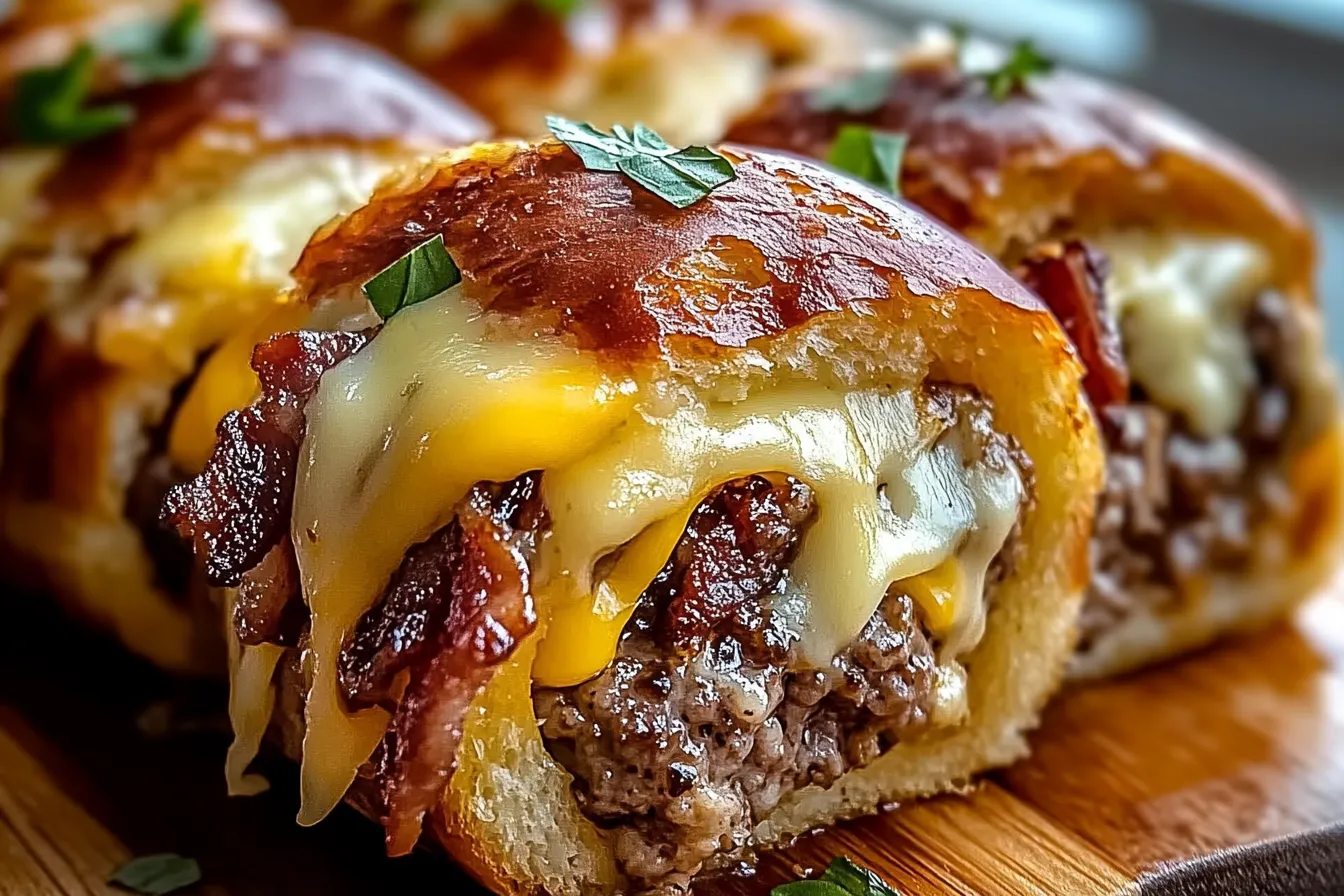 Savor irresistible garlic butter bacon cheeseburger rollups with this easy recipe Perfect for quick meals or game day snacks Try them today