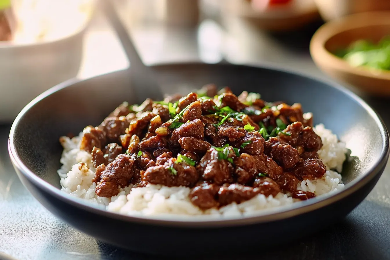 • Serve the beef mixture over a bed of rice or quinoa, garnished with fresh cilantro.