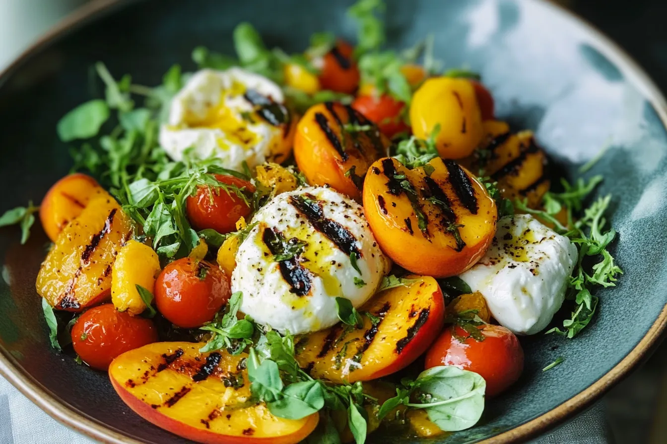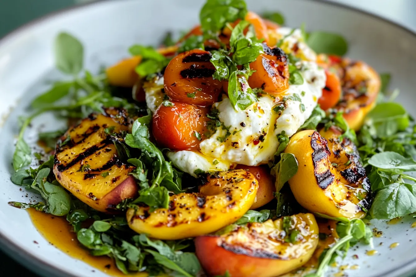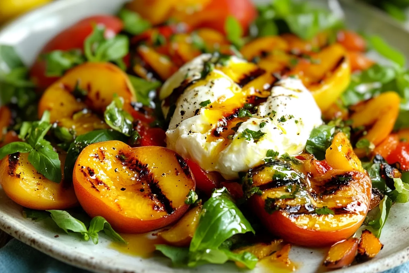 Grilled Peach & Burrata Summer Salad with Lemon Vinaigrette – Sweet, Savory, and Unforgettable