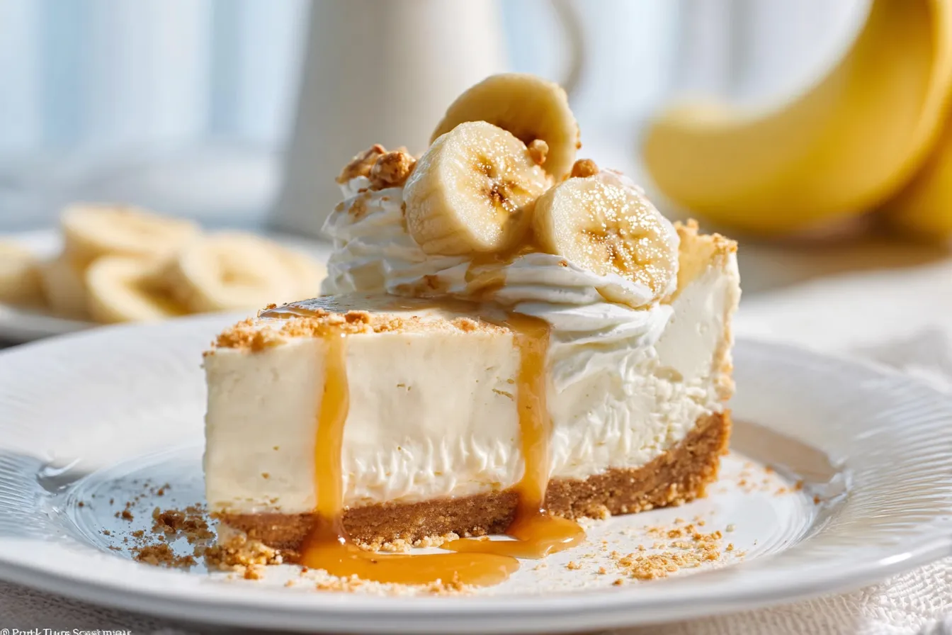 Savor creamy NoBake Banana Pudding Cheesecake a delightful dessert that combines sweet bananas smooth pudding for the perfect treat Enjoy now
