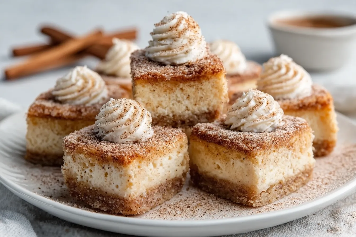 • Serve and Enjoy: Your mini churro cheesecake bites are now ready to be served! Arrange them on a beautiful platter for a stunning presentation.