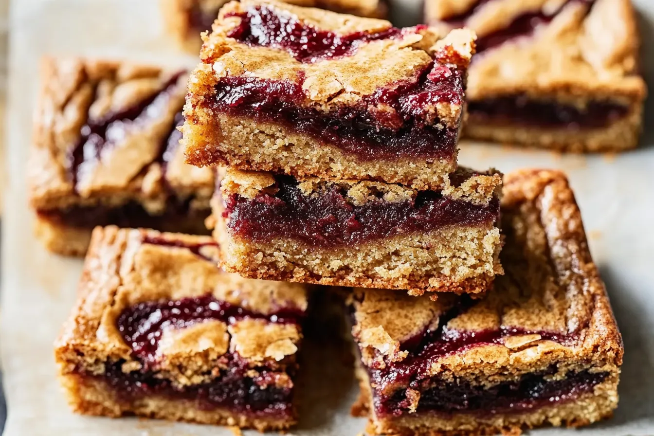 Indulge in these irresistible PBJ blondieschewy sweet and the ultimate treat to satisfy your cravings Perfect for any dessert lover