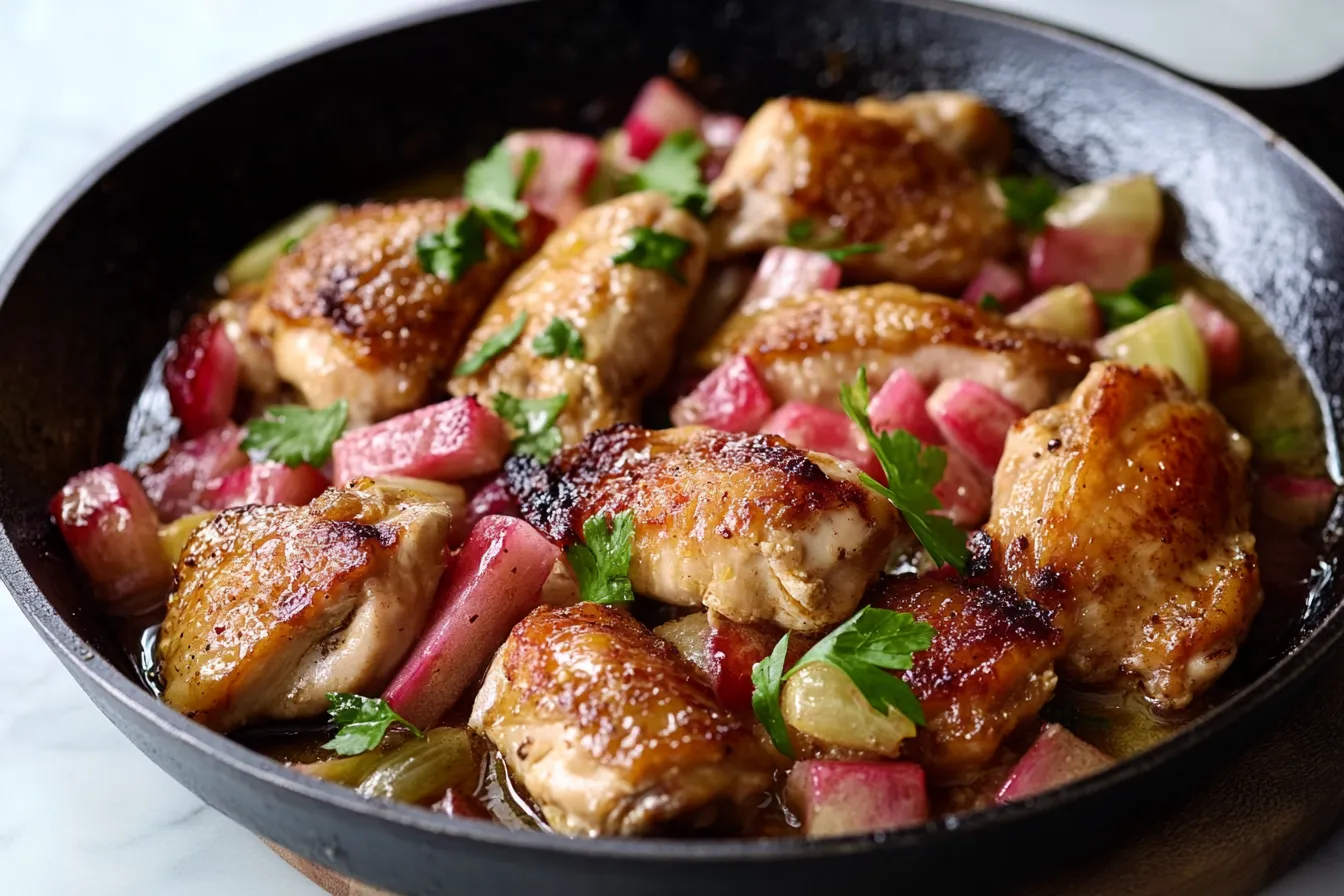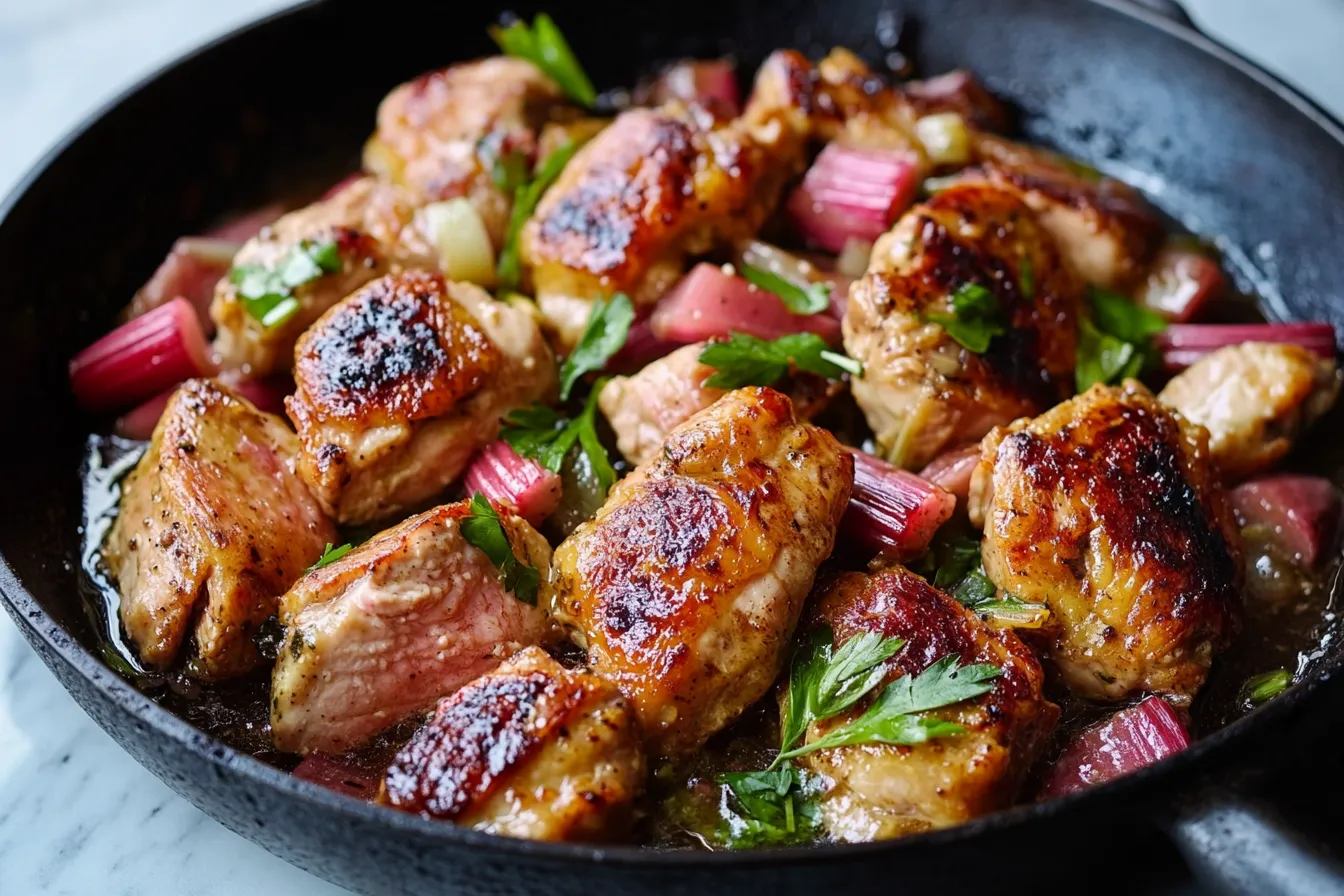 Savor this delicious Rhubarb Chicken Skillet with a honey glaze Perfect for quick weeknight dinners that impress and delight your taste buds
