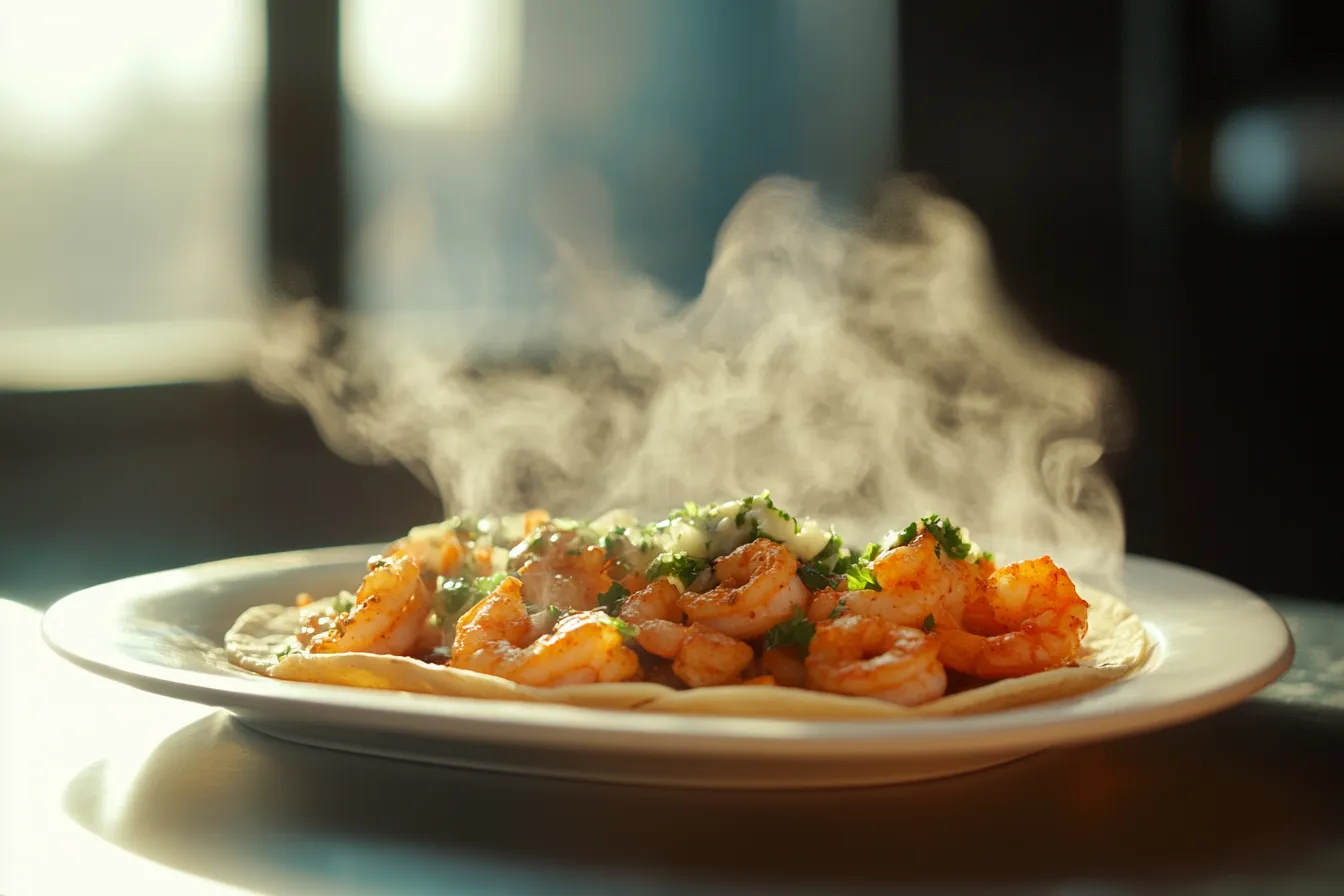 - Step 5: Assemble the Tacos – Layer a warm tortilla with shredded cabbage, sautéed shrimp, avocado, and cilantro. Drizzle with lime juice.