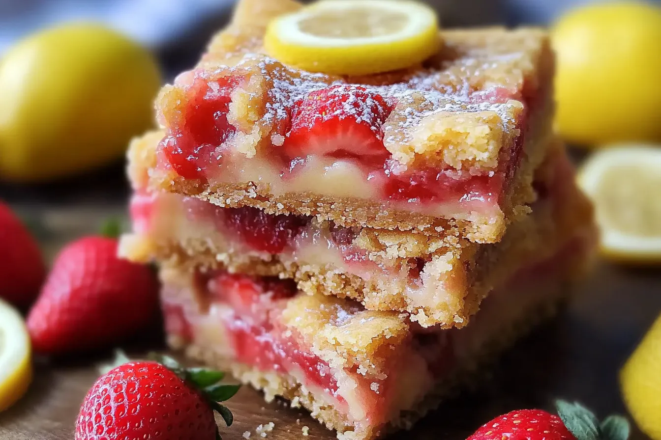 Strawberry Lemon Blondies : Have you ever bitten into a dessert so fresh, so bright, it instantly reminded you of sunshine and summer days? That’s exactly the magic you’ll find in these Strawberry Lemon Blondies. This recipe isn’t just about sweetness—it’s about the perfect harmony of flavors: the zesty tang of lemon dancing with the juicy burst of fresh strawberries, all wrapped up in a soft, buttery blondie.