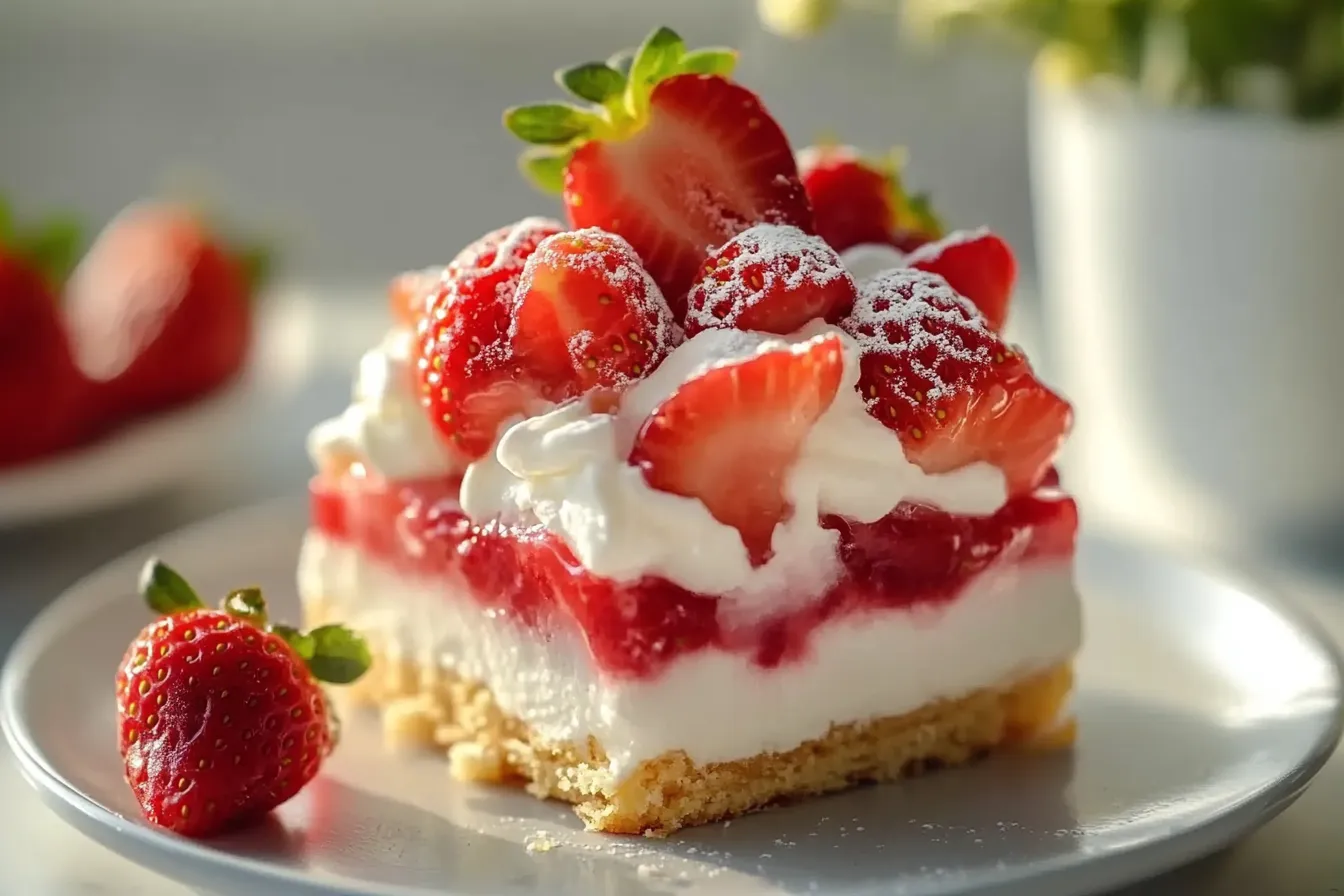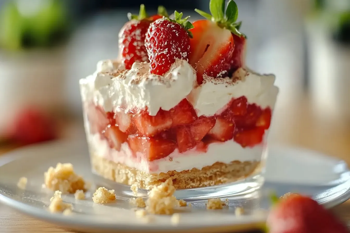 Indulge in this decadent dessert delight with layers of strawberry shortcake lush perfect for any sweet craving A dreamy treat awaits