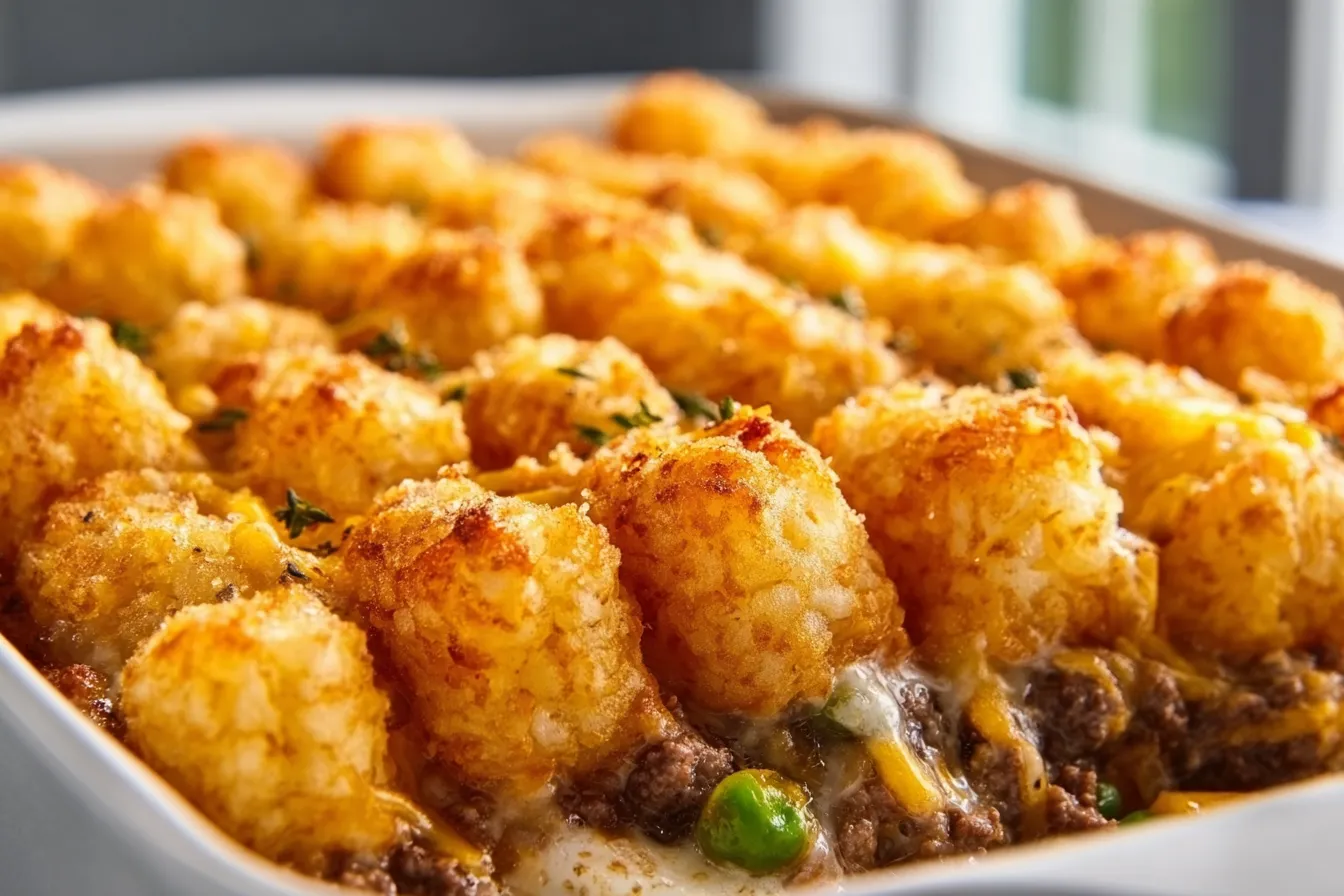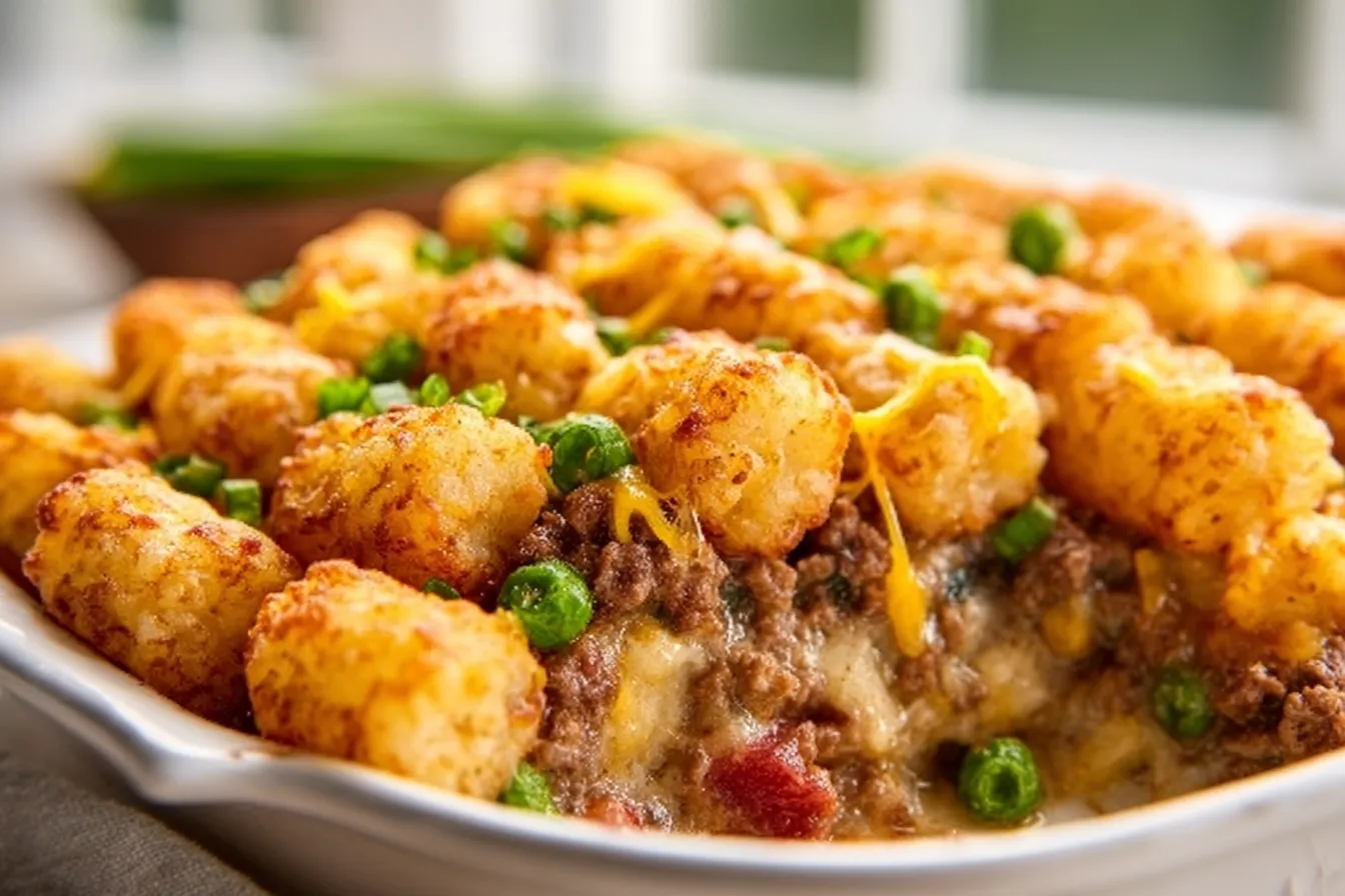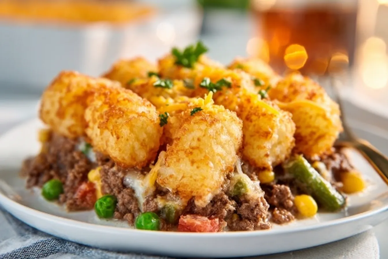 A comforting Tater Tot Casserole recipe featuring ground beef and a variety of ingredients, perfect for family gatherings.