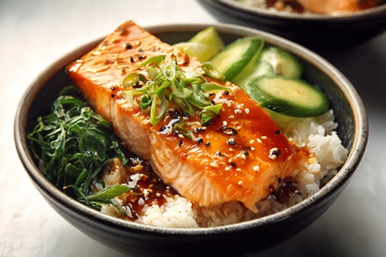 Savor these Teriyaki Salmon Rice Bowls Quick tasty perfect for any meal Enjoy an easy way to elevate your dinner with bold flavors